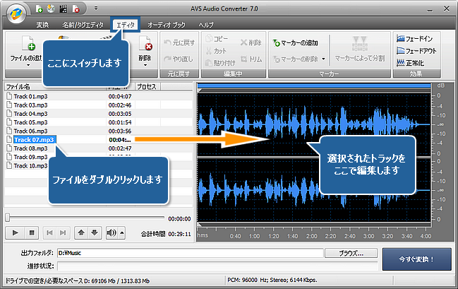 AVS Audio Converter によって音声を編集する方法についての詳細情報のために、オンラインヘルプの音声の編集チャプターを参考してください。