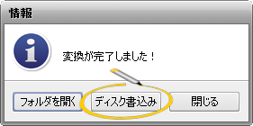 プロセスの終了の後で、以下のウインドウが表示されて、ディスク書込みボタンを押します。