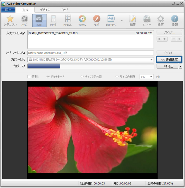 ビデオをディスクへ書き込んだ時の使用したカラーシステムをお使いの DVD プレーヤーかテレビがサポートしなくて再生できないことがあります。ビデオを見たかったら、AVS Video Converter を使用して一つのカラーシステムから別のに変換してみることができます。