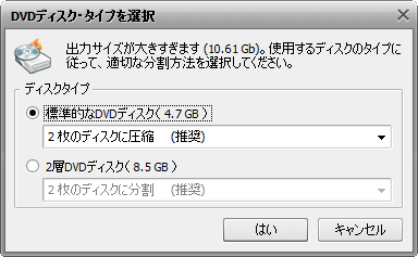 入力ファイルは長すぎて単層ディスクに合うことができないなら、以下のメッセージが表示されます: